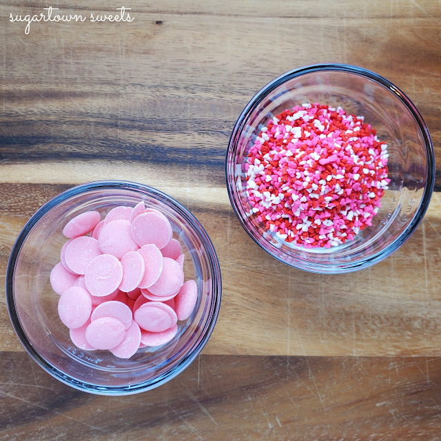 I'm using a few pink candy melts and Valentine sprinkles.